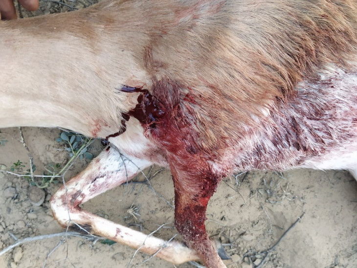 जीव रक्षा संस्था के जिलाध्यक्ष मोखराम धारणियां ने बताया कि खोखराणा के गाटा की रोही में शिकारी ने एक चिंकारा हिरण को गोली मारी। गोली की आवाज सुनकर लोग वहां आए तो एक व्यक्ति बंदूक लिए खड़ा दिखाई दिया। आवाज लगाने पर वह भाग निकला। गोली हिरण के टांग में लगी। सूचना मिलने पर पुलिस मौके पर पहुंची। जीव प्रेमी हिरण को बीकानेर ले आए तथा अस्पताल में भर्ती कराया।